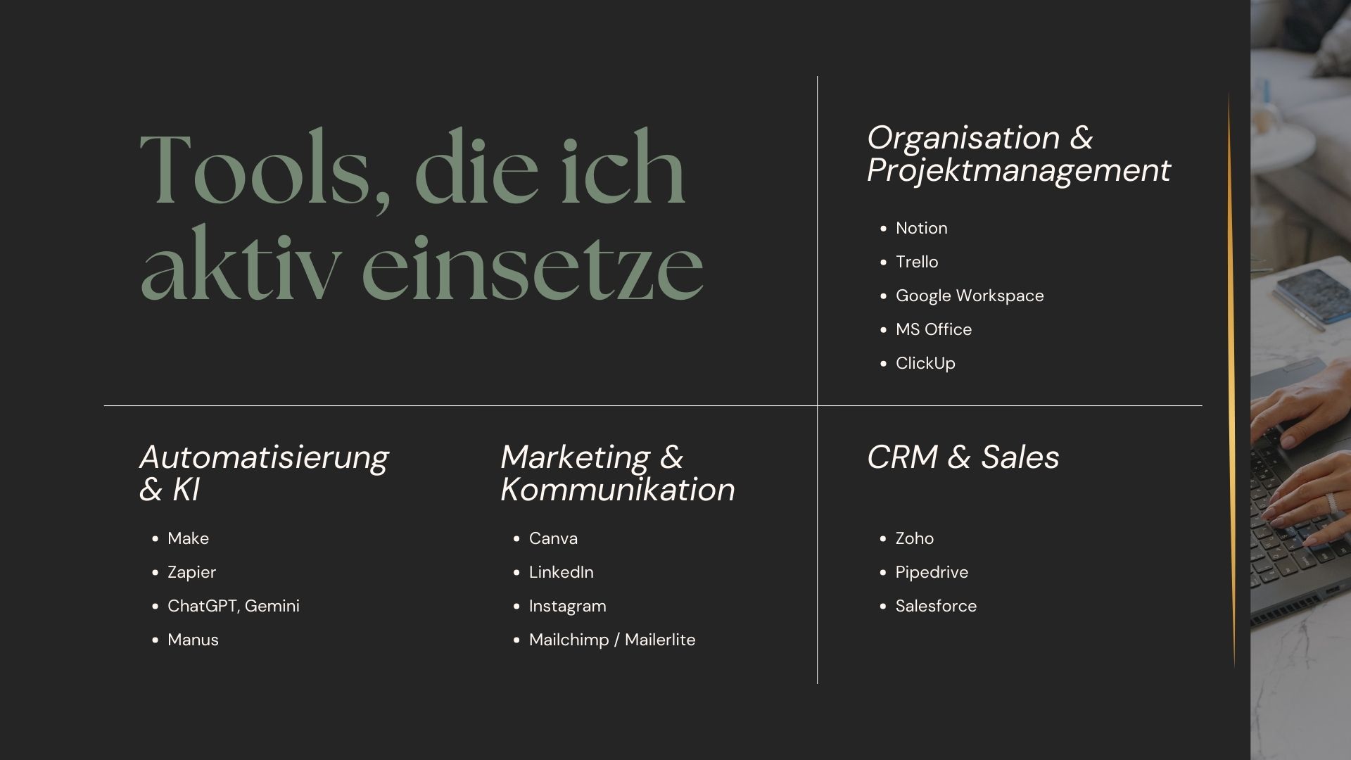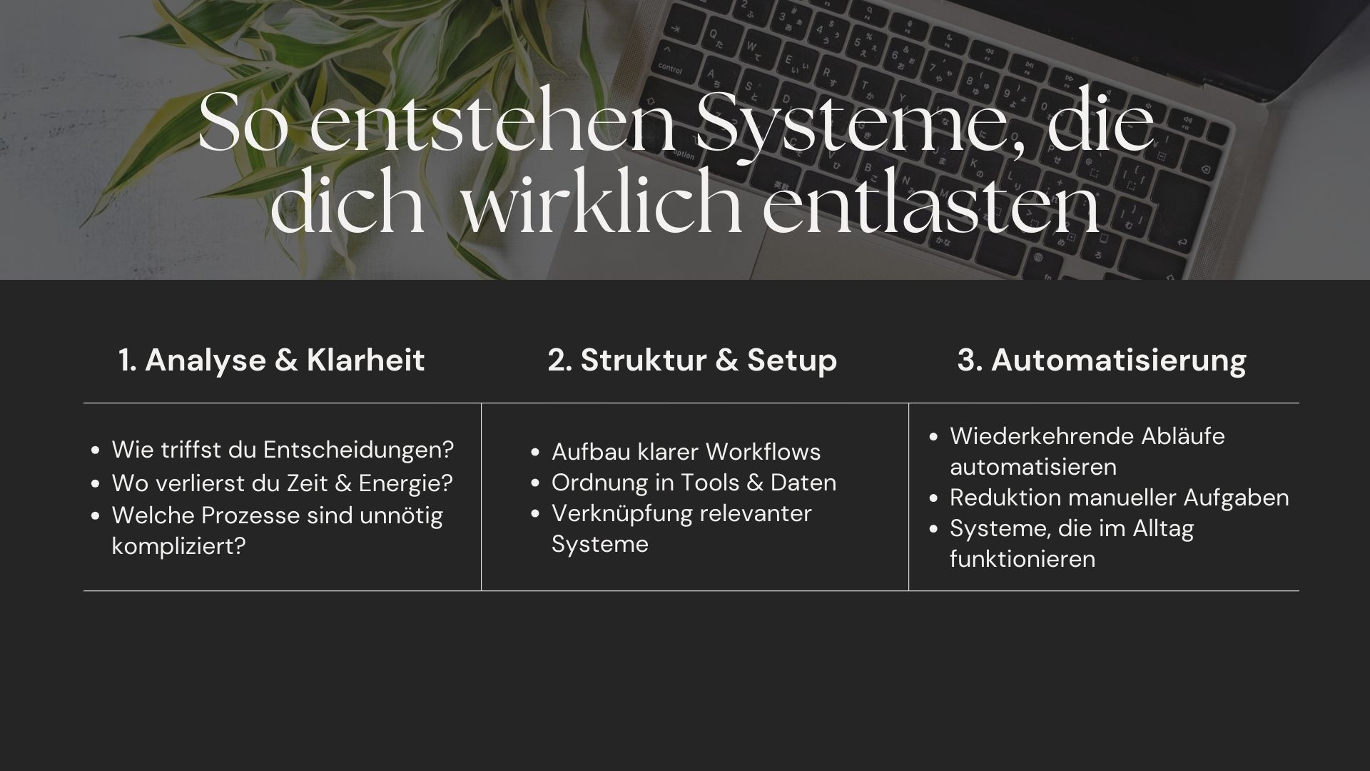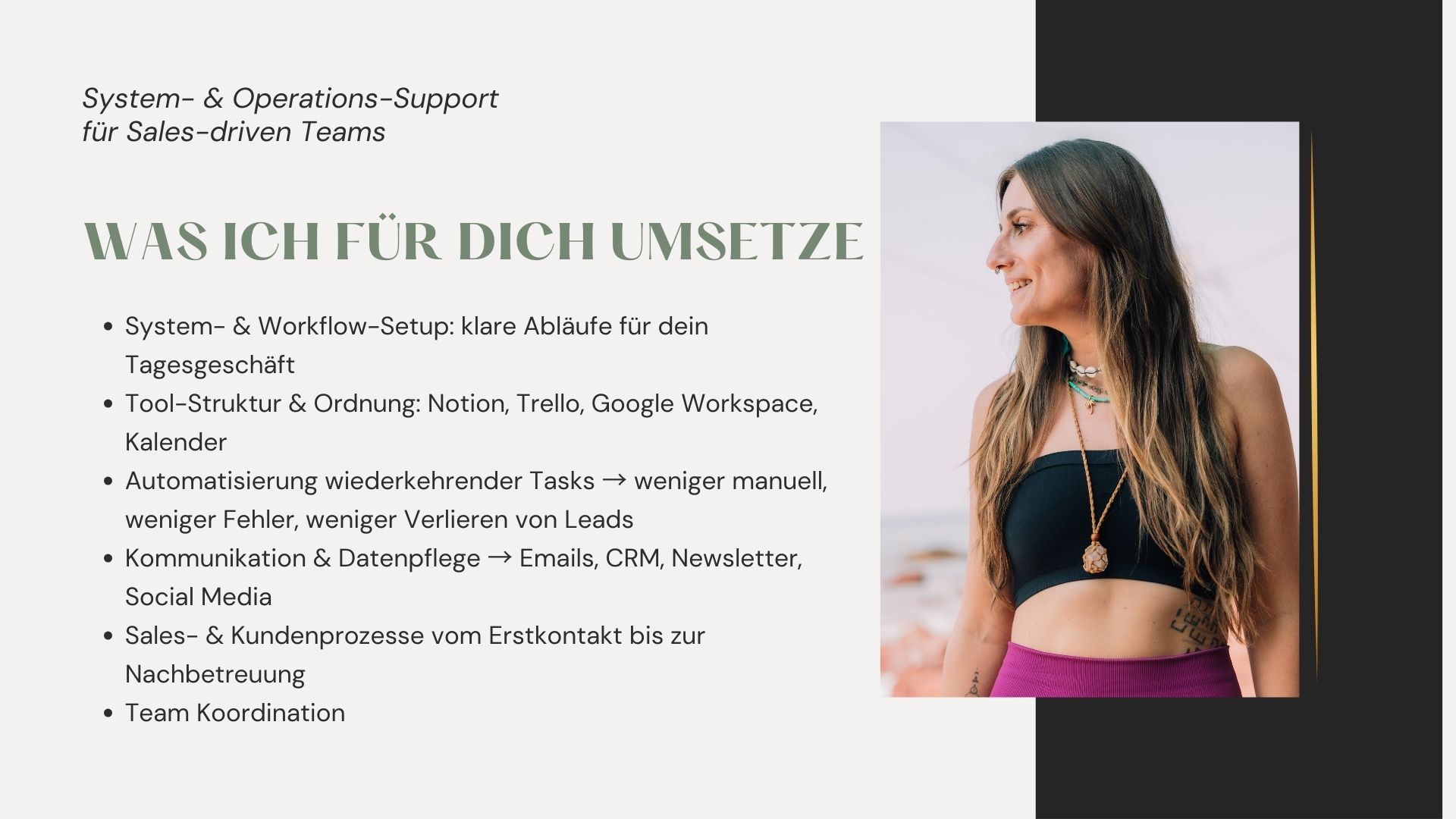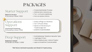 • klare Workflows & Systeme (Notion, Trello, Google Workspace)