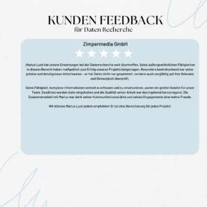 Recherche, Kundenbetreuung, Contentpflege, Organisation & Technik