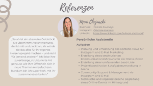 übernehme ich die Aufgaben, die dir Zeit und Energie rauben, sodass du dich ganz auf dein Herzensbusiness konzentrieren kannst.