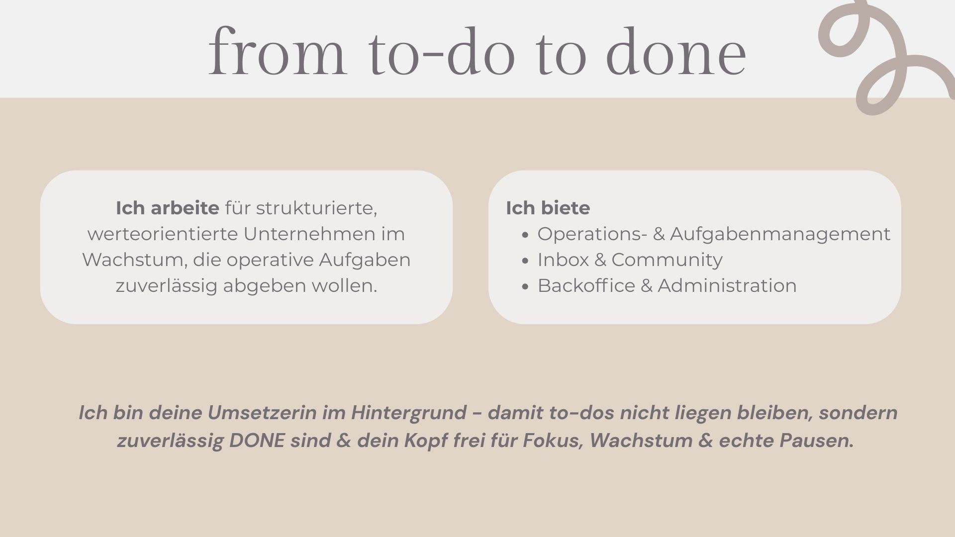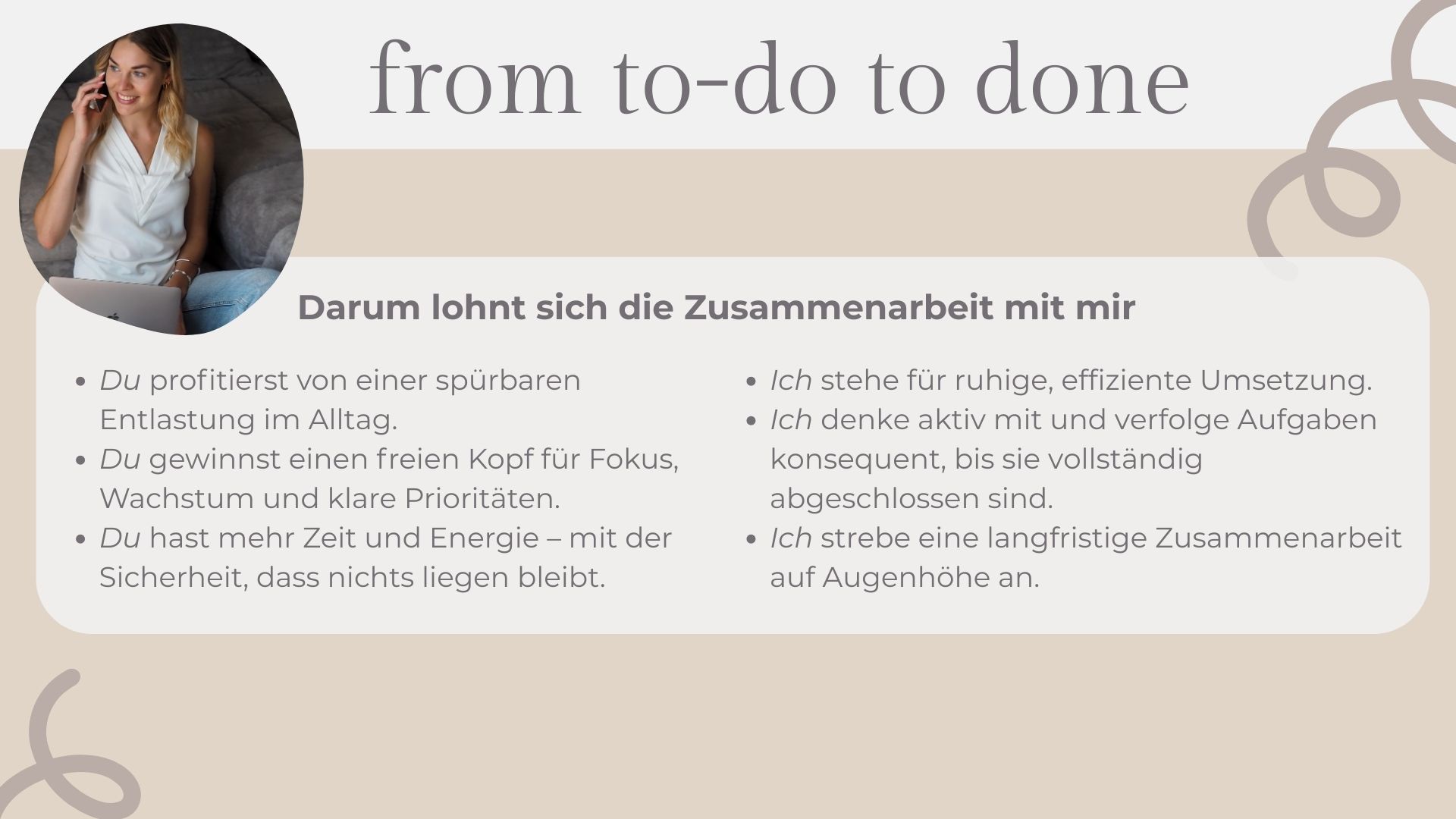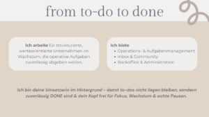 -> Ich sehe, was andere übersehen, denke einen Schritt voraus – und bringe to-dos ruhig, strukturiert & zuverlässig ins Ziel