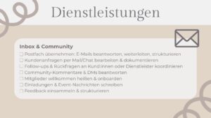 Postfach/Support übernehmen, Follow-ups nachhalten, Kommentare & DMs beantworten, Anliegen dokumentieren