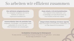 -> reflektierte, wachsende Unternehmer:innen, die bestehende Strukturen haben & ihre daily to-dos verlässlich abgeben wollen