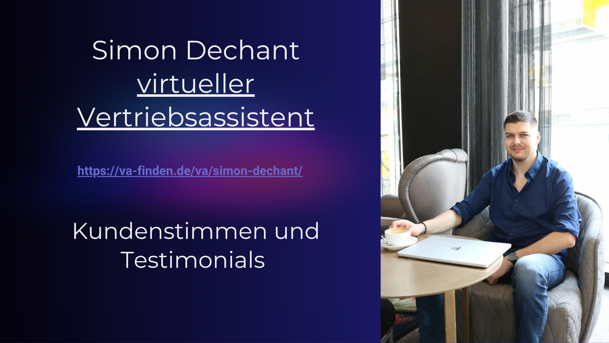 Ich bin Simon Dechant, Vertriebsassistent für (Solo) Selbstständige und Unternehmer.