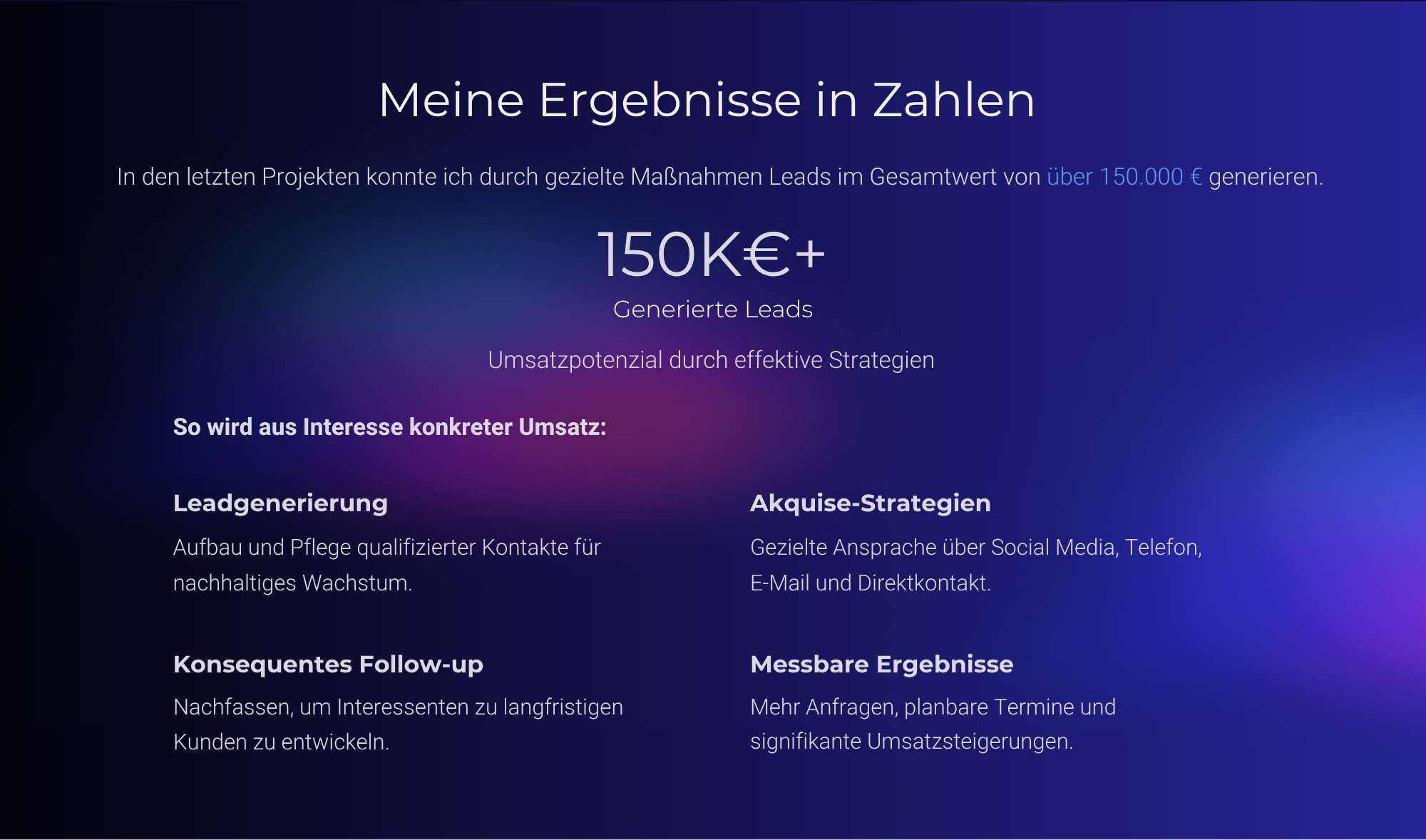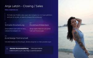 Mein Fokus liegt auf der Organisation und operativen Entlastung: Ich denke mit, koordiniere Abläufe und sorge dafür, dass nichts liegen bleibt. Vom Erstkontakt bis zur Terminvereinbarung. Ob im Backoffice, im Vertriebsprozess oder als strukturierter Sparringspartner: Ich halte den Rücken frei, setze um und bringe Ordnung ins Tagesgeschäft. Typische Aufgaben sind: Organisation und Backoffice (Abläufe, Tools, Kommunikation), Vertriebsunterstützung (Leadpflege, Nachfassen, Terminkoordination), Führen von Erstgesprächen, Kundenservice und E-Mail-Betreuung, Recherche, Listenpflege, Admin-Aufgaben