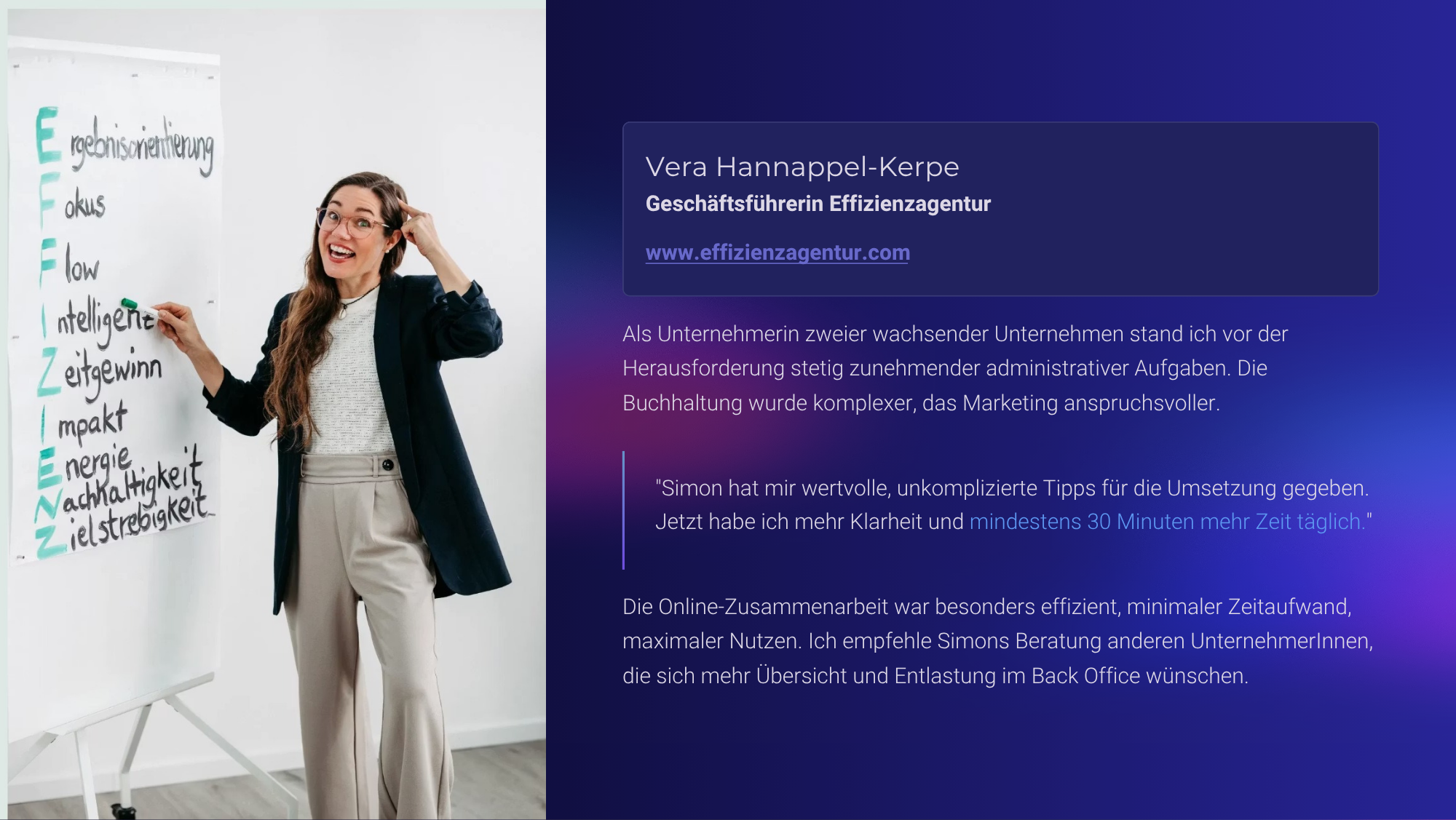 – 30–40+ Stunden mehr Zeit für dein Kerngeschäft