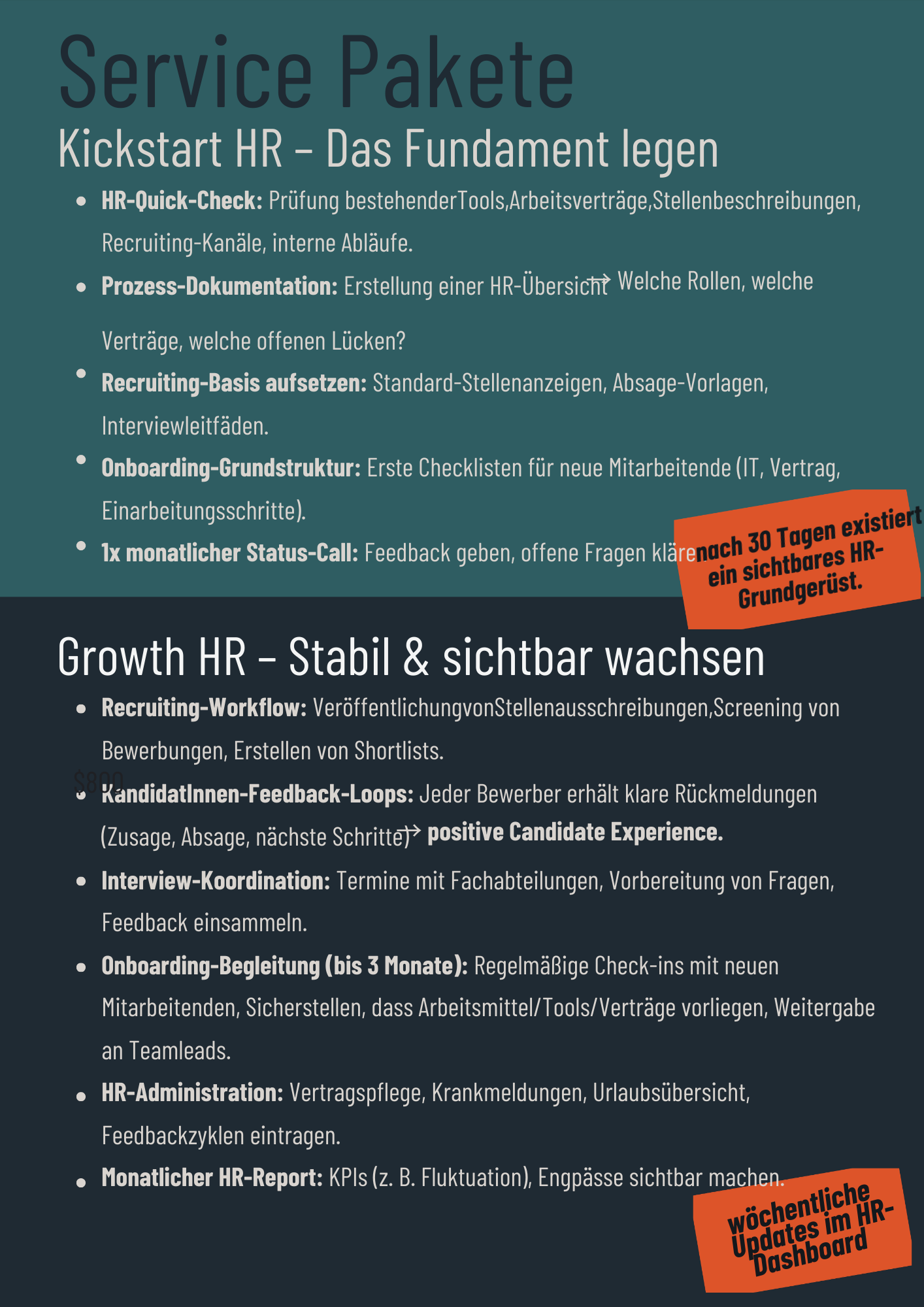 Wenn dein Unternehmen wächst und du jemanden suchst, der Ordnung, Klarheit und Richtung ins HR bringt, dann bin ich die Richtige für dich.
