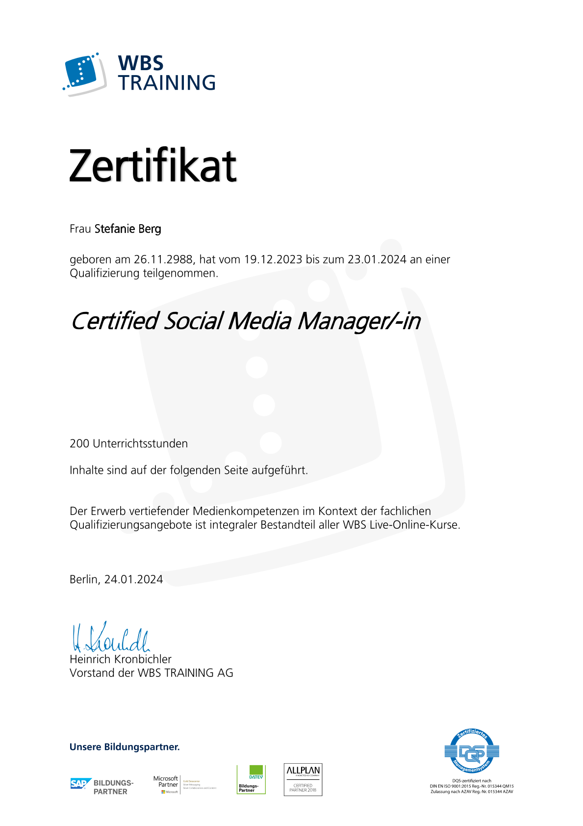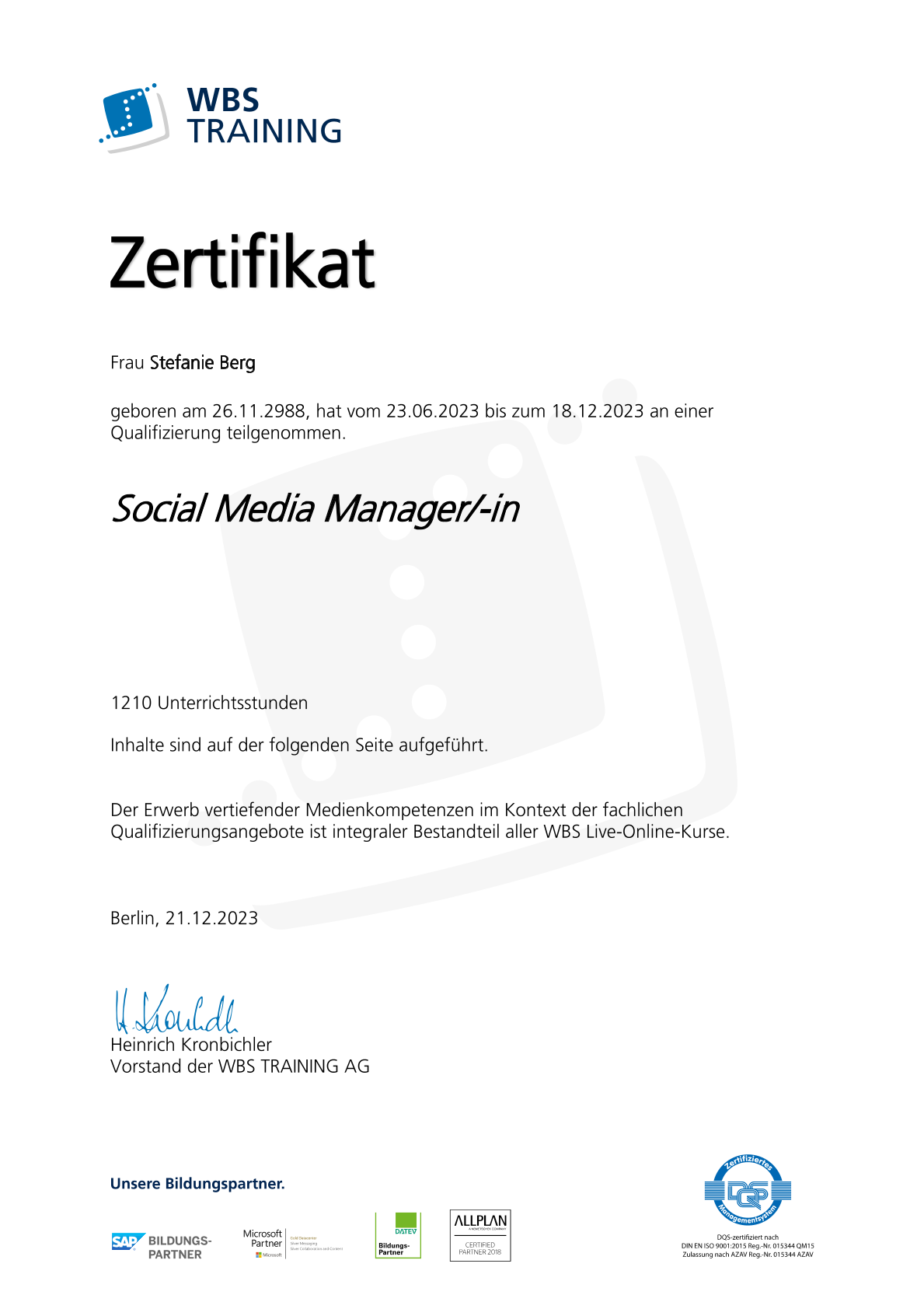 WBS TRAINING AG & Webmasters Europe e.V. 06/2023 - 01/2024