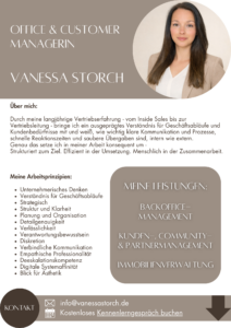 Durch meine langjährige Vertriebserfahrung – vom Inside Sales bis zur Vertriebsleitung – bringe ich ein ausgeprägtes Verständnis für Geschäftsabläufe und Kundenbedürfnisse mit und weiß, wie wichtig klare Kommunikation und Prozesse, schnelle Reaktionszeiten und saubere Übergaben sind, intern wie extern.