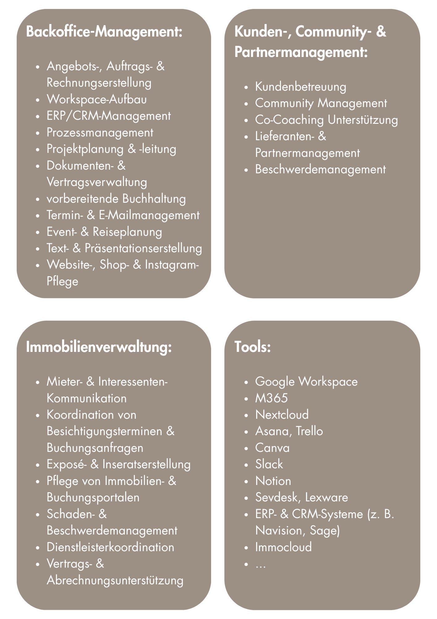 - Backoffice Management & administrative Unterstützung